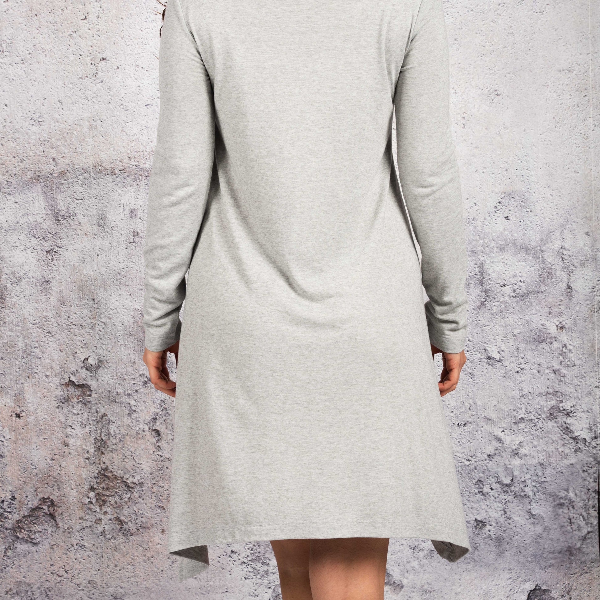 Abito in tessuto morbido con manica lunga e scollo tondo ed avvolgente. Ideale per accompagnarti nella tua quotidianità sia in casa che fuori, offre una vestibilità comoda versatile.